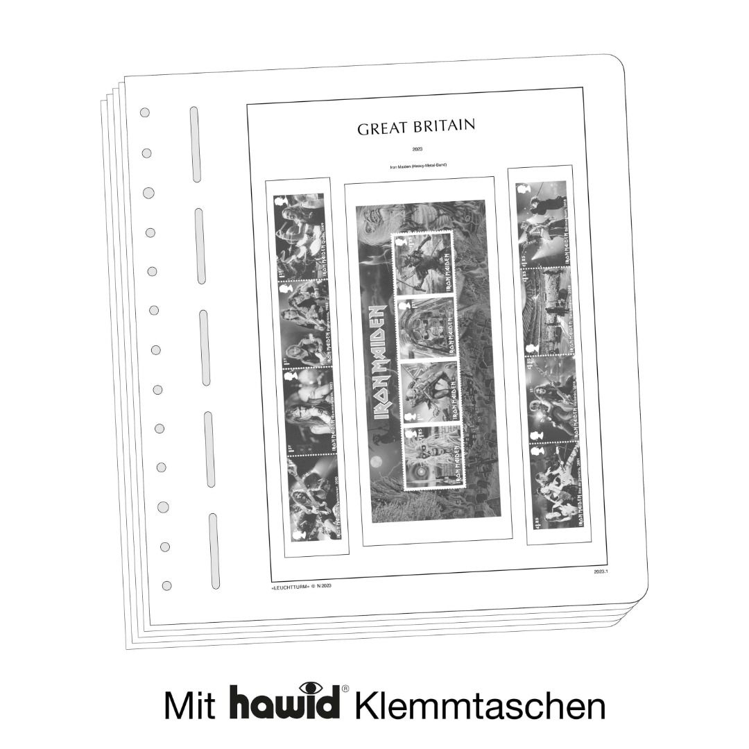 Die Albenblätter (13-Loch-System) werden im detailgetreuen schwarz–weiß Offsetdruck auf alterungsbeständigem, holz- und säurefreiem Karton (170 g/m 2 ) gedruckt. Leuchtturm verzichtet bewusst auf einen Farbdruck. Dies dient als Orientierungshilfe, damit Sie auf einen Blick sehen, welche Marken Ihnen noch fehlen. In der Größe des Markenvordrucks sind SF-Schutztaschen aus weichmacherfreier, glasklarer, entspiegelter Polystyrol-Folie auf den Albenkarton geklebt. Die Schutztaschen halten die Briefmarken präzise an ihrem Platz und verhindern ein Festkleben. Gleichzeitig bieten sie auch einen optimalen Schutz gegen Staub und Beschädigungen.