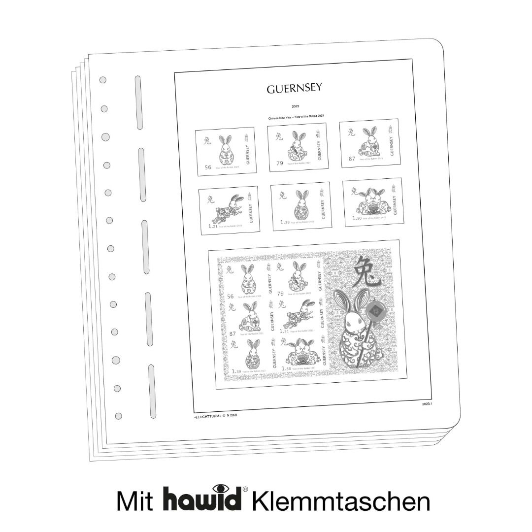 Die Albenblätter (13-Loch-System) werden im detailgetreuen schwarz–weiß Offsetdruck auf alterungsbeständigem, holz- und säurefreiem Karton (170 g/m 2 ) gedruckt. Leuchtturm verzichtet bewusst auf einen Farbdruck. Dies dient als Orientierungshilfe, damit Sie auf einen Blick sehen, welche Marken Ihnen noch fehlen. In der Größe des Markenvordrucks sind SF-Schutztaschen aus weichmacherfreier, glasklarer, entspiegelter Polystyrol-Folie auf den Albenkarton geklebt. Die Schutztaschen halten die Briefmarken präzise an ihrem Platz und verhindern ein Festkleben. Gleichzeitig bieten sie auch einen optimalen Schutz gegen Staub und Beschädigungen.