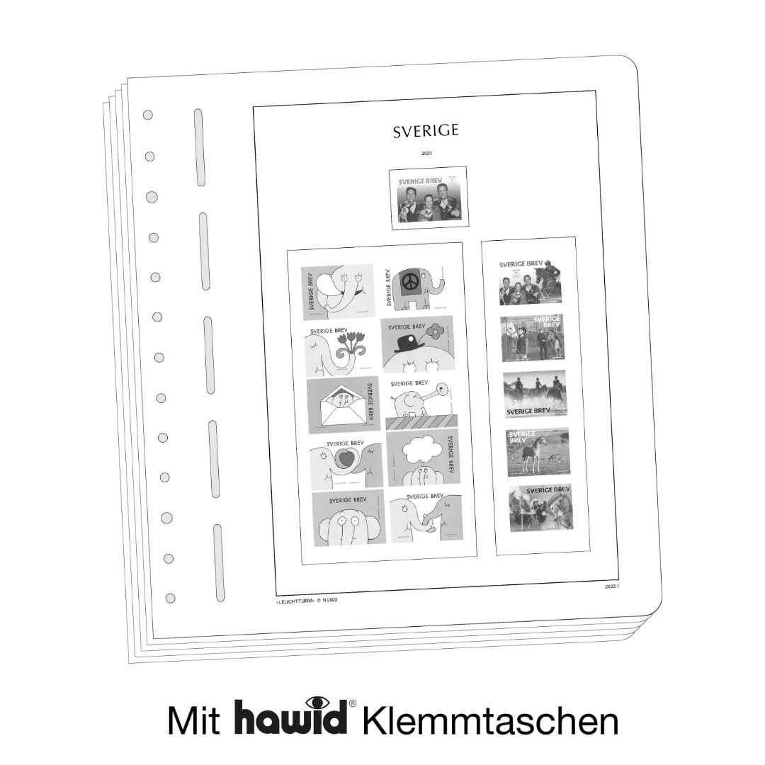 Die Albenblätter (13-Loch-System) werden im detailgetreuen schwarz–weiß Offsetdruck auf alterungsbeständigem, holz- und säurefreiem Karton (170 g/m 2 ) gedruckt. Leuchtturm verzichtet bewusst auf einen Farbdruck. Dies dient als Orientierungshilfe, damit Sie auf einen Blick sehen, welche Marken Ihnen noch fehlen. In der Größe des Markenvordrucks sind SF-Schutztaschen aus weichmacherfreier, glasklarer, entspiegelter Polystyrol-Folie auf den Albenkarton geklebt. Die Schutztaschen halten die Briefmarken präzise an ihrem Platz und verhindern ein Festkleben. Gleichzeitig bieten sie auch einen optimalen Schutz gegen Staub und Beschädigungen.