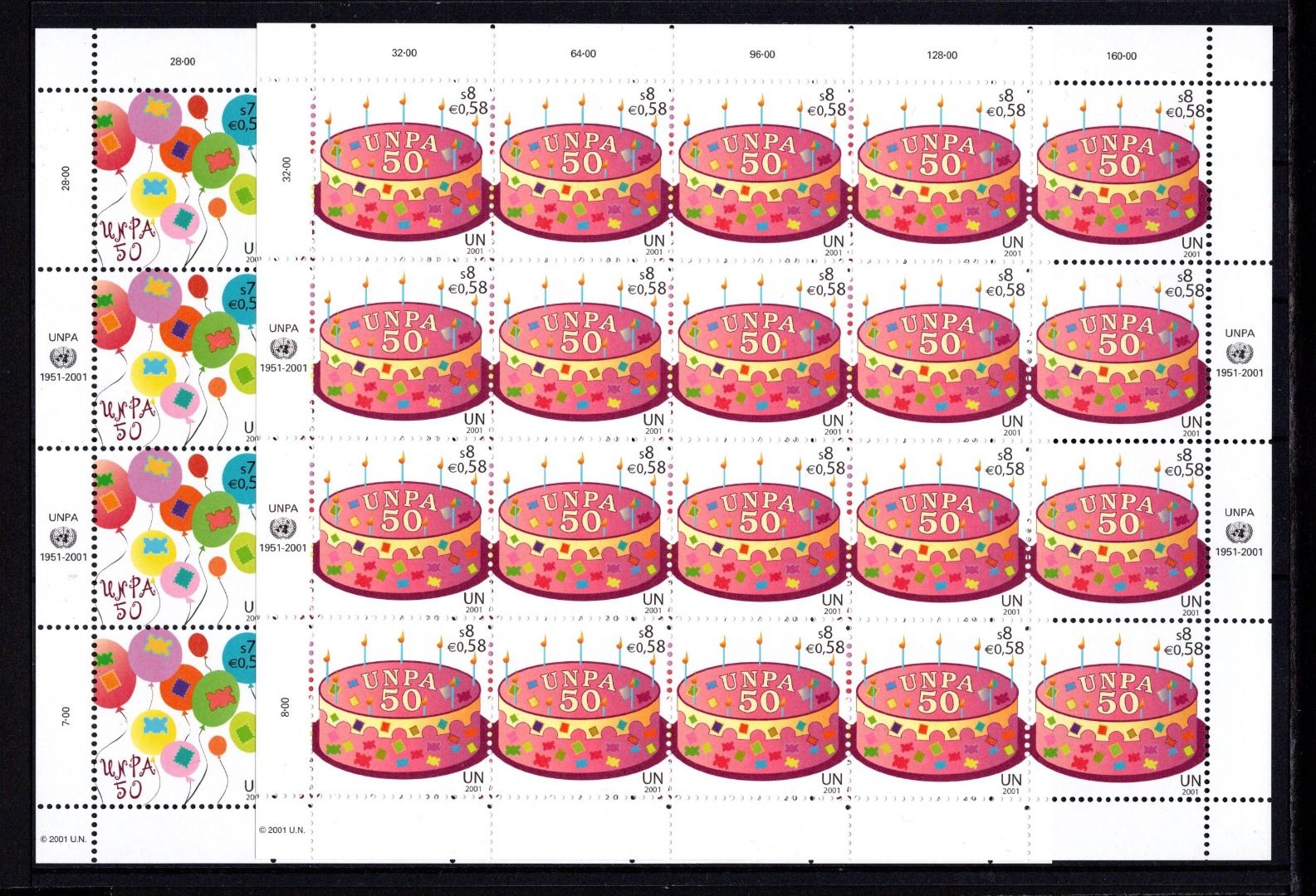 UNO Wien 20er Bögen MiNr. 342-343 postfrisch 50 Jahre Postverwaltung
